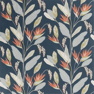 Reminiscent of tropical holidays this directional bird of paradise design displays a bold painted feel. Printed on a cotton linen ground with a slub warp and weft colourful highlights add detail to Llenya’s flowers and buds. A matching wallpaper is also available.