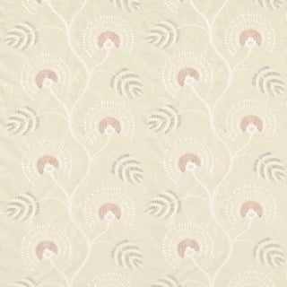 Paloma Fabrics - Louella. A modern floral trail embroidered fabric with leaves highlighted in metallic yarns in soothing colourways creates the look of gentle movement on blinds and drapes. Team with the wallpaper of the same name.