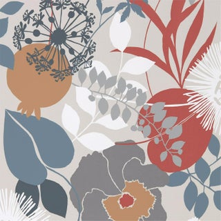 Standing Ovation - Doyenne. An intricate wallpaper design encompassing overblown flowers silhouetted flower stems and leaves available in a variety …