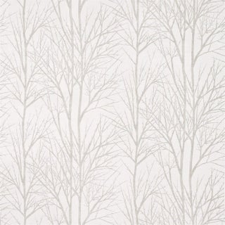 Poetica Fabrics - Tabella. A floaty linen voile fabric depicting delicate silhouettes of a tree in bud printed in two coordinating colours on a neutral background. Use to add a touch of woodland charm to blinds and curtains.