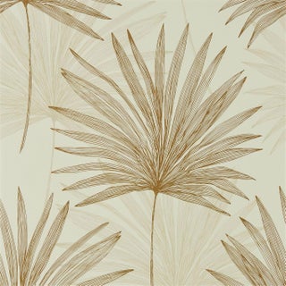 With a relaxed hand drawn look large scale sketchy palms fan out across this rotary printed design. Choose from darker tones dramatic and glamourous or the pared back colourways of Pewter Chalk and Pebble.