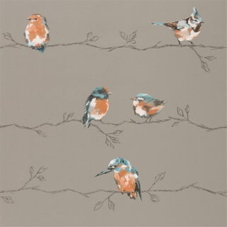 Standing Ovation - Persico. Enchanting British birds in all their beauty perch at random intervals on this wallpaper design gravure printed on a wide-width paper. A fabric of the same name is also available.