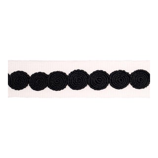 A handsome corded embroidery design on a cotton faille ground, Castille Tape Narrow makes a snazzy, graphic statement on upholstery, pillows or drapery panels.