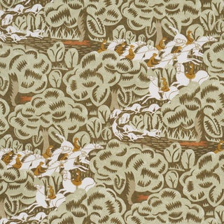 Part of the New Yorker Collection, Margaret Schloeman's Fox Chase fabric was inspired by the artist's fabulous illustration for the magazine's November 7, 1931, cover. Lively and graphic, this medium-scale fox hunt pattern has a stylized Art Deco aesthetic that still looks modern today. Also available as a wallpaper.