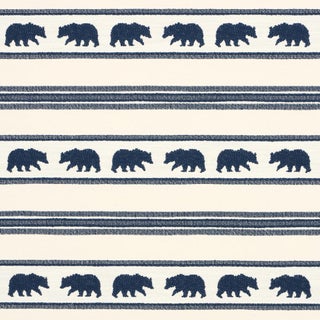 This simple blanketlike woven stripe is animated by silhouettes of roaming bears. With its soft hand and substantial weight, Koda Stripe is a wonderful multitextured medium-scale fabric that lends a playful touch to furniture or pillows.