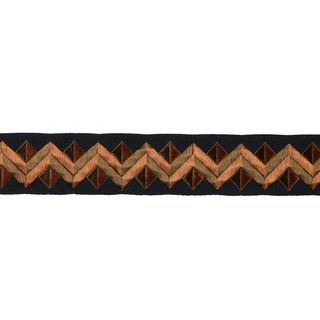 A dazzling trim with a dynamic satin-stitched pattern, Zigzag Moderne Tape adds energy and polish to pillows, upholstery, and window treatments. Made of 100% cotton, this multidirectional embroidered design has marvelous texture and dimension.