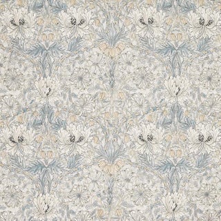 Elegant in design and colour this sheer fabric was inspired by Morris's watercolour paintings of Honeysuckle from 1876. Crafted from 100% cotton this wide-width fabric is ideal for vast expanses and large window settings.