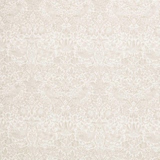 A cheeky bird pecks at delicious strawberries on this enticing sheer wide-width fabric. Layer with matching wallpaper and embroidered fabric for the most soothing schemes.