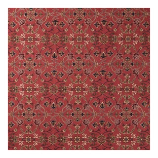 Concentrating on the stylised elements of the central motifs Persian Scroll is an exceptional embroidery crafted using a dissolvable thread to resist dye in some areas. Each colour catches differently across the embroidery creating pools of pigment and the ground has a subtle texture of colour. This particular dye technique is very special - it feels aged lived in and like an artefact for the modern home. This intricate level of work has made a fabric full of depth and interest. The rich authentic colourways perfectly suit the Persian influence of the design beloved by William Morris. While the Ochre colourway is bold Plum feels subdued and intriguing. Due to the overdye process a unique finish is created creating subtle differences from batch to batch.