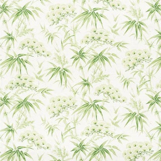 Bamboo and plum blossoms are among the traditional Japanese motifs that enliven this painterly, large-scale botanical print on a Linen …