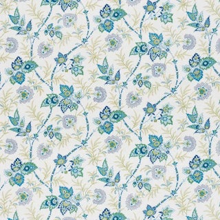 Delicate and exotic, this alluring mid-scale floral is printed on a 100% Linen ground. Its scrolling vines, leaves and flowers add color and romance to any room. Also a wallpaper. Sold as a 2-yard minimum.