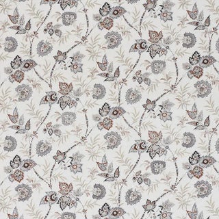 Delicate and exotic, this alluring mid-scale floral is printed on a 100% Linen ground. Its scrolling vines, leaves and flowers add color and romance to any room. Also a wallpaper. Sold as a 2-yard minimum.
