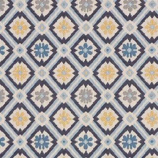 Inspired by traditional French tapestries, this colorful, woven design features a small-scale lattice with floral accents. It is a handsome, durable update of a familiar classic. Sold as a 2-yard minimum.