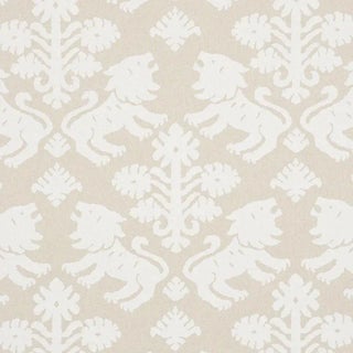 This artisanal print features mirrored silhouettes of rampant lions and stylized flowers on a textural union cloth ground. Sold as …