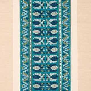 With a uniquely rustic, old-world quality, this wide-striped textile is handwoven with a jute weft and Cotton warp and then embroidered with an open stitching for a rich, tactile feel. Sold as a 2-yard minimum.