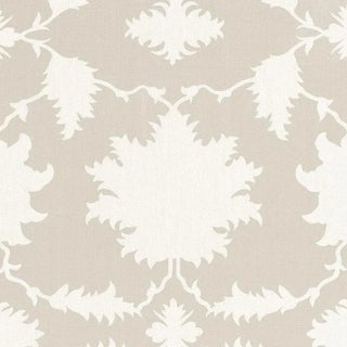 Inspired by an antique Persian carpet, this large-scale, graphic print by Mary McDonald features symmetrical silhouettes of flowers and leaves. Also available as a wallpaper. Also available as a wallcovering. Sold as a 2-yard minimum.