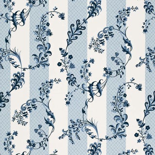 Bagatelle features a cheerful combination of stripes, delicate lattice and scrolling vines on crisp glazed Cotton. The print epitomizes the timeless charm of classic chintz. Sold as a 2-yard minimum.