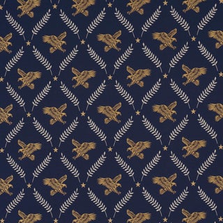 Inspired by a 1960s trellis wallpaper from our archive, Lolaire is an updated lattice design with a hand-drawn eagle motif adapted from New York City street art. Woven in Italy with touches of metallic yarns, this medium-scale fabric brings visual interest and elegance to pillows, upholstery, and more. Also available as a wallpaper.