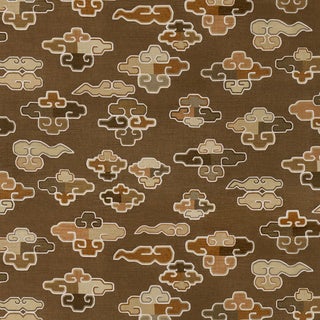 Cristina Buckley was inspired by a chinoiserie document in her personal collection when she conjured this colorful, stylized cloud pattern. Printed on a lustrous velvet ground, this sophisticated, stylish medium-scale fabric is ideal for upholstery, window treatments, or pillows. Also available as a wallpaper.