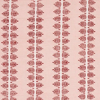 Alva Hand Block has a beautifully home-spun appeal. The Vertical stripes in the hand-woven fabric are adorned with block-printed rows of feathery, fern-like leaves for a charming effect. Sold as a 2-yard minimum.