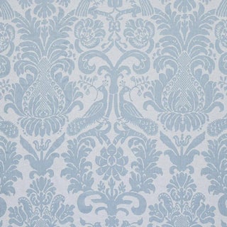 Although its floral medallions have a regal air, Anna Damask is made of a laid-back washed-linen fabric, making it feel lived in and less formal. The motifs have a subtle sheen that plays with the light when made into curtains or curved around furniture. Sold as a 2-yard minimum.