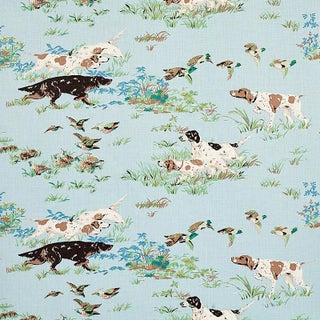 With its field dogs and fluttering quail, Pointers is a classic hunting scene that speaks to lovers of canines and country life. A painterly print on a soft, linen ground, this fabric is suitable for upholstery, windows, or pillows, and makes a wonderful companion for other patterns. Sold in a 2-yard minimum.