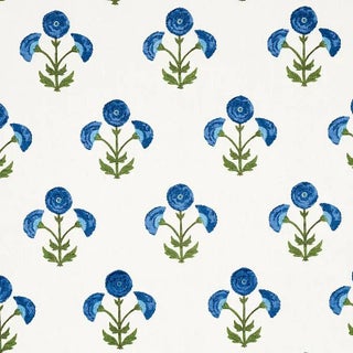 Inspired by traditional Indian hand-block designs, Saranda Flower Embroidery features stylized flowers handprinted on a linen-ground fabric for a painterly bouquet full of color and depth. Also available as a wallcovering. Sold in a 2-yard minimum.