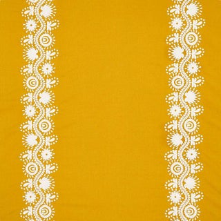 Inspired by the folkloric embellishments on an antique Ukrainian blouse, Theodora Embroidery features a pair of vertical floral serpentine stripes stitched on a hand-dyed linen ground. Part of the Cabana collection, this appealing fabric design lends itself to many imaginative applications, whether used selvage to selvage or framed on a chair or pillow. Sold as a 2-yard minimum.