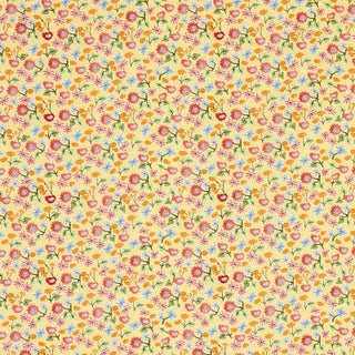 "Happy Menocal’s microfloral fabric offers a fresh take on a traditional calico. With its charming, stylized flowers scattered against a stippled background, Calico in is a vibrant small-scale pattern that is suitable for pillows, upholstery, and window treatments. Also available as a wallpaper. Sold as a 2-yard minimum.