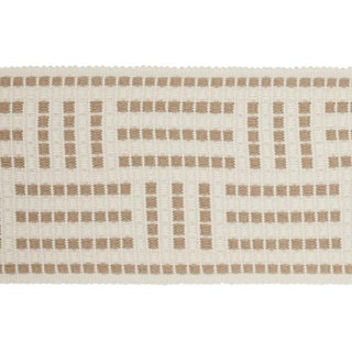 A chunky basketweave design inspired by knitting charts, Brickell Tape Indoor/Outdoor features a simple, geometric motif. It is a unique, graphic touch that can be used indoors or out. Sold as a 2-yard minimum.