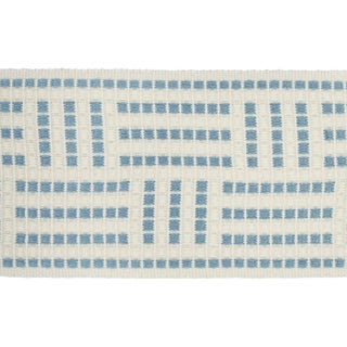 A chunky basketweave design inspired by knitting charts, Brickell Tape Indoor/Outdoor features a simple, geometric motif. It is a unique, graphic touch that can be used indoors or out. Sold as a 2-yard minimum.