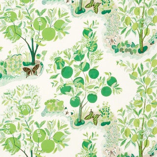 Charming and whimsical, leaf-colored Citrus Garden Indoor/Outdoor fabric is Josef Frank's beloved 1947 print designed just for Schumacher and a …