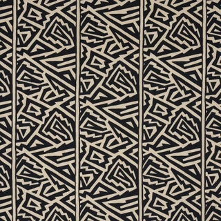 Filled with vibrating kinetic energy, Jagged Maze was designed by David Kaihoi and inspired by the pottery of ancestral Pueblo people. Done in a mid-scale and arranged into wide stripes, this screen-printed cotton fabric has tonal variations that add a rustic edge.