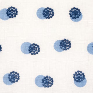 Taylor Embroidery artfully combines a few simple elements—bursts of offset French knots embroidered over a field of hand-screened dots—for a linen fabric that’s visually interesting and super-sophisticated.