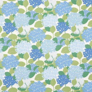 In this painterly large-scale fabric, which Paul Poiret created exclusively for Schumacher in 1930, showstopping clusters of hydrangea pop against the design's cotton-linen ground.