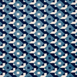 An all-over three-color geometric in reminiscent of Op Art patterns is rendered in cushy cut velvet to create a supremely sophisticated upholstery fabric that will play well with others.