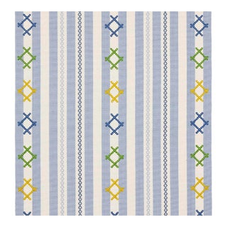 Inspired by Ukrainian needlework, Rhodes Stripe is a woven stripe overlaid with charming, cross-stitched flourishes that take it from ordinary to extraordinary.