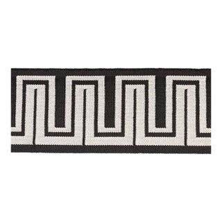 A fresh take on a familiar form, Zeus Indoor/Outdoor Tape in black is a modified Greek key design by Mary McDonald. The tight high-performance weave resists stains, moisture, mildew and fading. This stylish three-inch-wide trim is a chic finishing touch for upholstery, pillows or windows, indoors or out.