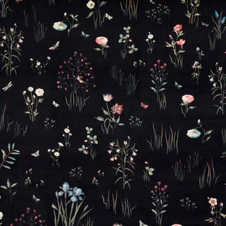 Based on original hand-painted art, Primavera Velvet in black by Charlap Hyman & Herrero with Pilar Almon features delicate flowers and botanical elements within a large-scale repeat for a truly showstopping effect. Beautifully printed on cotton velvet, this exquisite fabric is wonderful for furniture and pillows and especially fabulous for curtain panels.