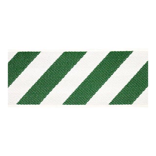 A familiar motif with a fun twist, AirMail Indoor/Outdoor Tape in green-and-ivory is a versatile three-inch-wide trim by Mary McDonald. The tight high-performance weave resists stains, moisture, mildew and fading. This stylish diagonal stripe delivers a touch of chic to upholstery, pillows or windows, indoors or out. Also available in two-inch width.