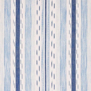 A true warp print made of hand-dyed cotton and linen yarns, Mirza Ikat Stripe in blue-on-natural is a textural pattern with exquisite dimension and a gorgeous hand. It is a wonderful mid-scale stripe for furniture, pillows and window treatments.