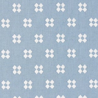 Inspired by Turkish carpets, Thandie Embroidery in ivory-on-chambray is a wonderful small-scale geometric pattern stitched on a cotton-linen ground. Use this sophisticated and versatile embroidered design for light upholstery, pillows or window treatments.